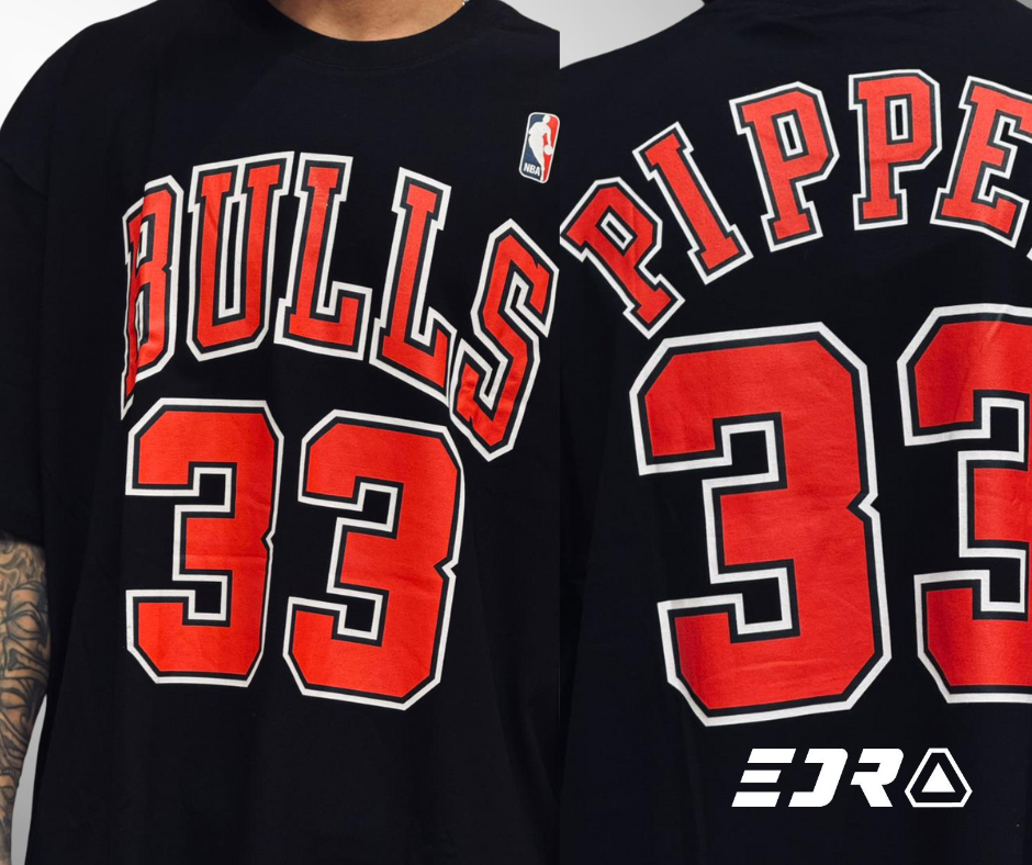 A Camiseta Chicago Bulls Mitchell & Ness é uma homenagem ao lendário Scottie Pippen. Com o número 33 em destaque, essa peça traz a herança da NBA para o streetwear, unindo a história do basquete com o estilo urbano da EDR.